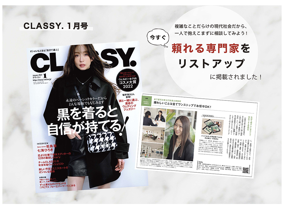 雑誌「CLASSY」に掲載いただきました。(2022.11.28)